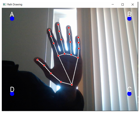 Mediapipe’s hand-tracking model is applied to detect hands in each frame and extract precise landmark positions, with a focus on the index finger tip.